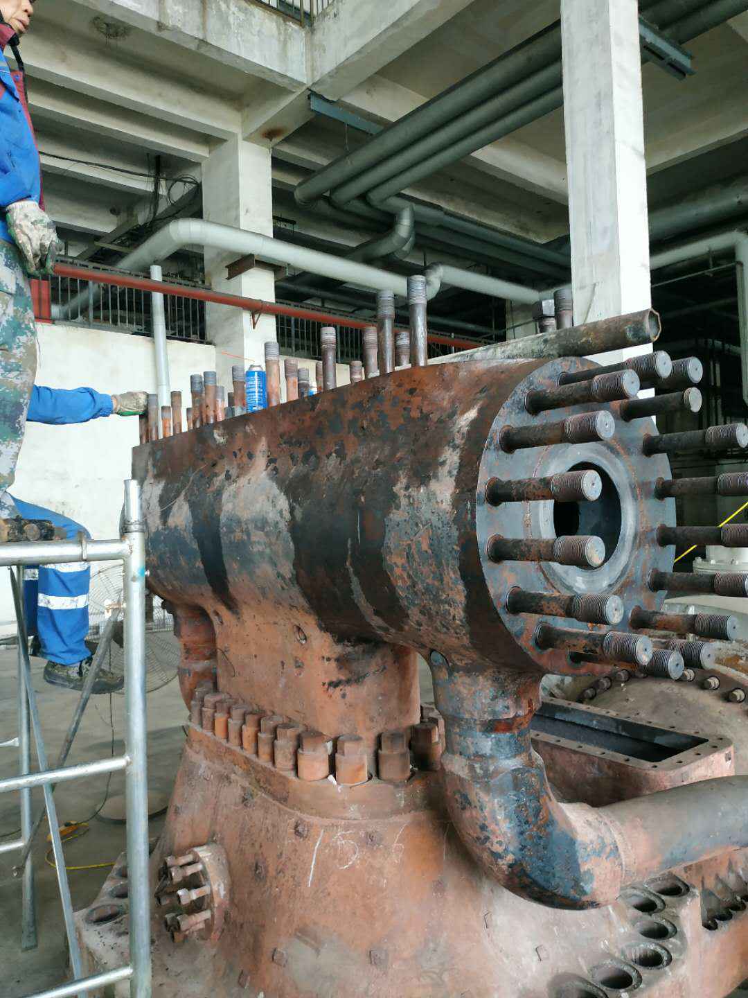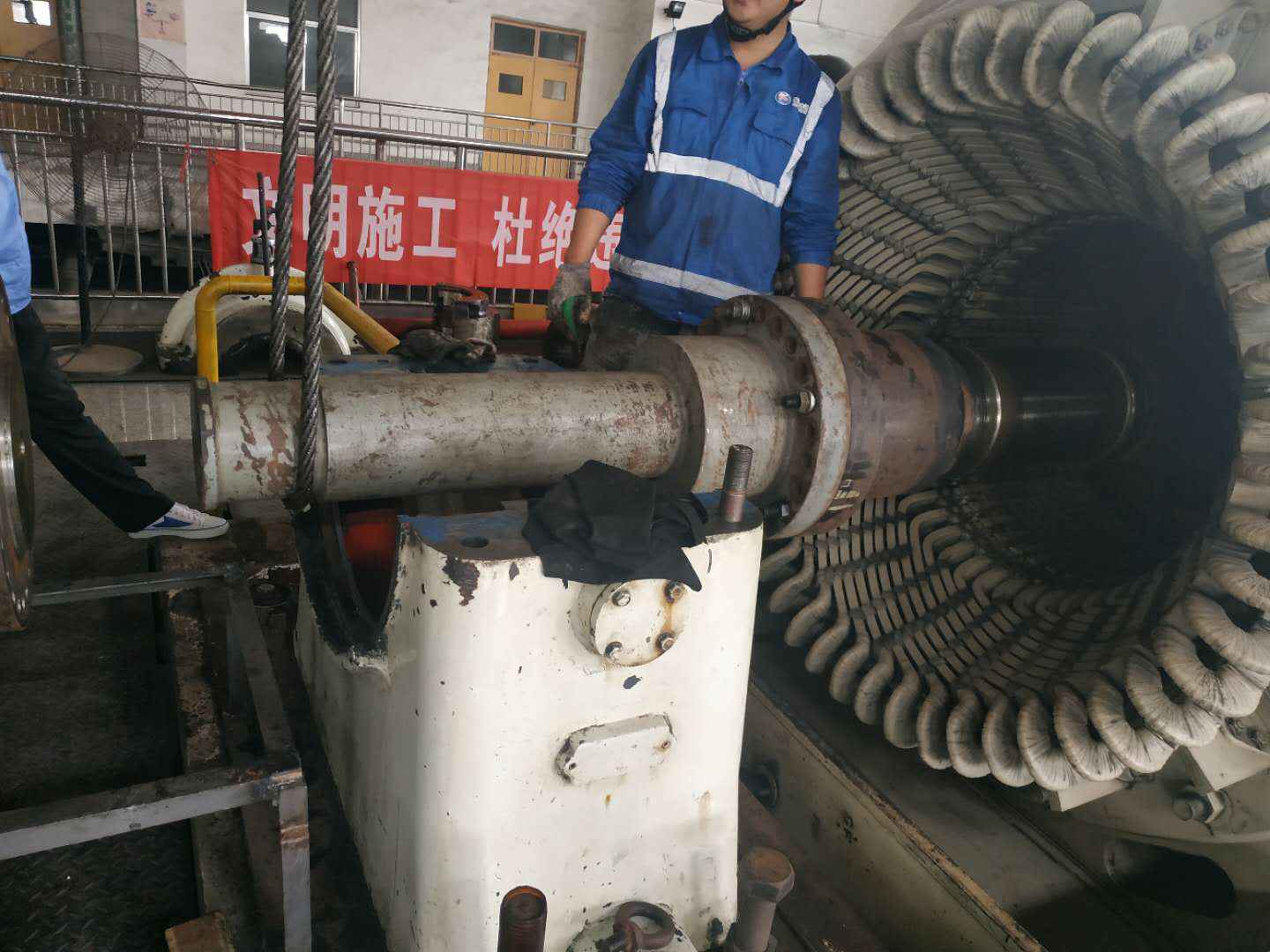 由4008云顶集团(国际)官方网站承建的山东海能化学有限责任公司机组B15MW背压式汽轮机组(原 C25抽汽凝汽式机组)大修工程现已完成凝结水泵、油站检修工作,发电机前后轴承座基础垫铁研磨工作,目前蒸汽室螺栓的拆卸工作及发电机定子与转子的清理工作陆续启动,下气缸吊隔板工作也在稳步进行中。